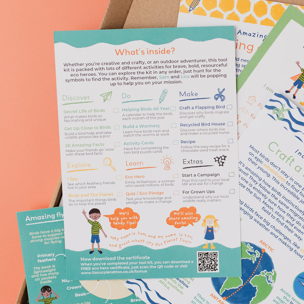 Once your little eco hero has completed the activities, they can download a certificate to show their friends that they are a real ECO expert! A QR code is included in the kit.