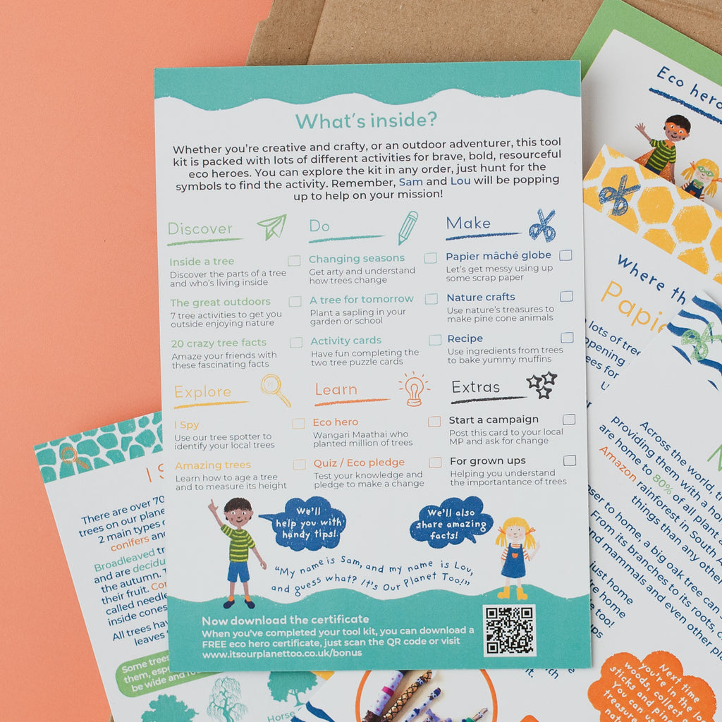 Once your little eco hero has completed the activities, they can download a certificate to show their friends that they are a real ECO expert! A QR code is included in the kit.